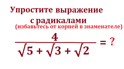Упростите выражение с радикалами, избавившись от корней в знаменателе: 4/(√5 + √3 + √2)