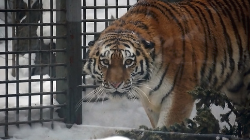 Молодая тигрица Уссури и Максимус продолжают дружить через решетку.