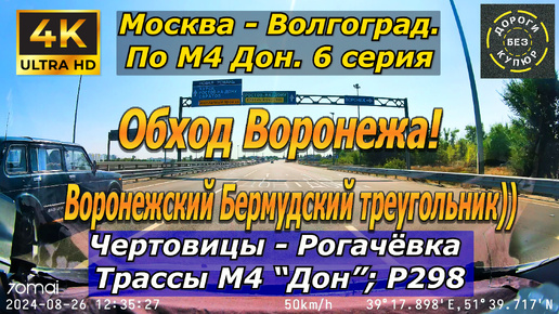 Москва-Волгоград. По М4 Дон. 6 серия. Чертовицкое-Рогачёвка. Трассы М4; Р298. Обход Воронежа!