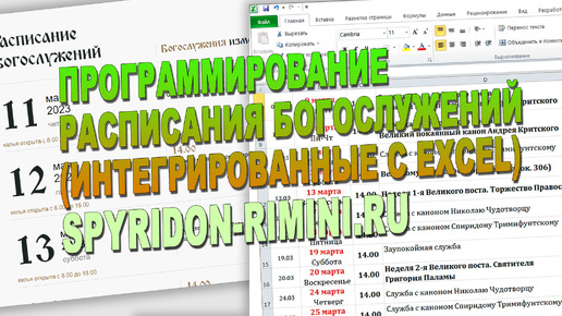 Программирование и верстка расписания богослужений, интеграция с excel для церковного сайта