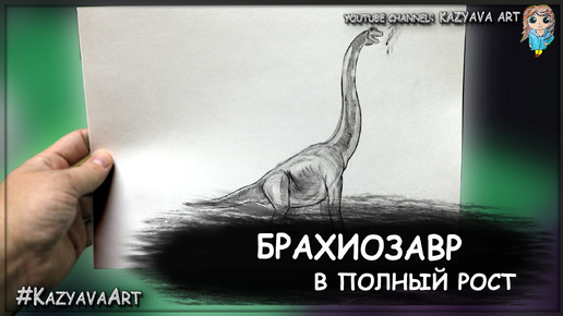 Как нарисовать динозавра Брахиозавр карандашом в полный рост.
