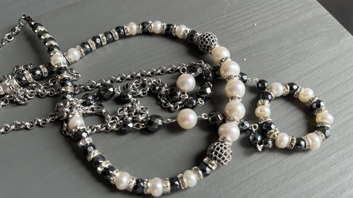 УКРАШЕНИЕ из жемчуга и черных бусин ( 2 вместе )