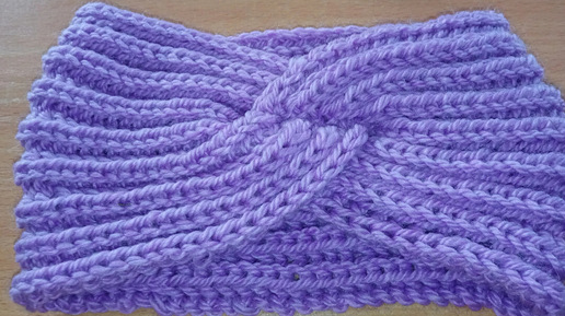 Вяжем одно полотно спицами или крючком, складываем, сшиваем и красивая повязка на голову готова
