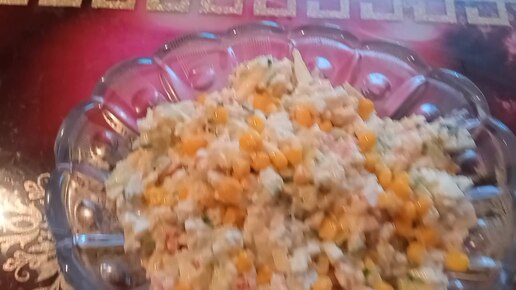 Крабовый салат с рисом и свежим огурцом