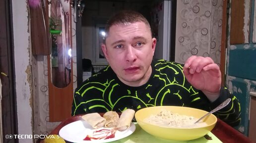 Мукбанг/обжор/блины фаршированные/Доширак/