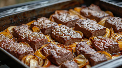Очень вкусное и нежное мясо с луком в духовке.