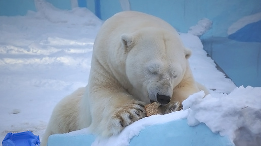 Белые медведи Кай и Герда сейчас вместе, но завтрак у них в отдельных вольерах.