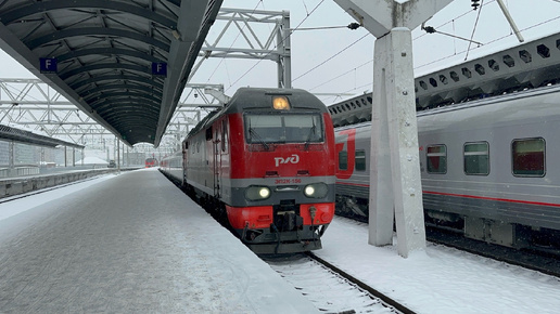 "Опоздание 52 минуты!" Электровоз ЭП2К - 156 с пасс.поездом на Московском вокзале, февраль 2025 года
