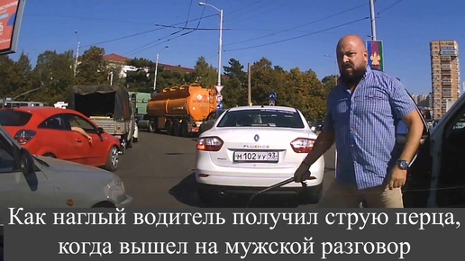 Как наглый водитель получил струю перца, когда вышел на мужской разговор