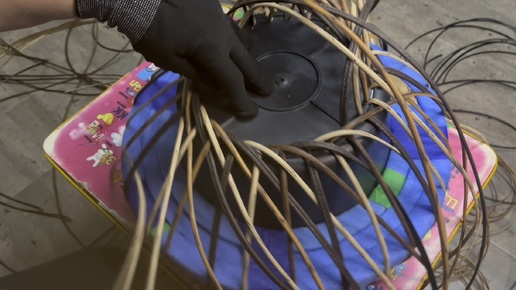 МК шар из 3-х разных цветов лоз. Плетение методом осминожка.