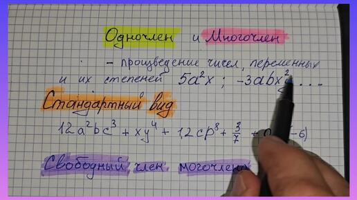 Одночлен, Многочлен, Нулевой одночлен, Свободный одночлен. Математика седьмой класс