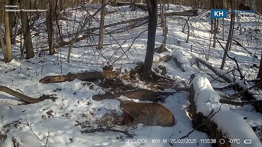 Бобер стал добычей рыси: кадры не для чувствительных в «Калужских засеках»