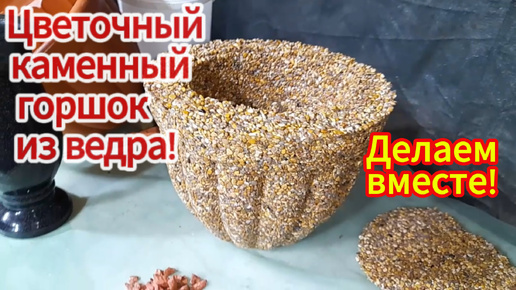 Как сделать шикарный цветочный горшок из камня и ведра!