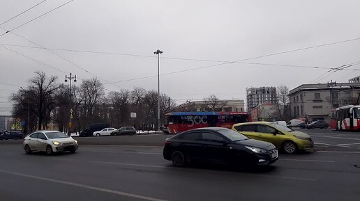 Трамвай 300 лет СПБГУ на площади Московские ворота