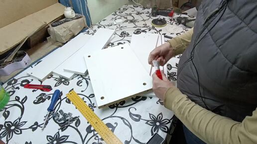 Учусь сверлить отверстия и немного ремонтирую пол. Буська требует еду!