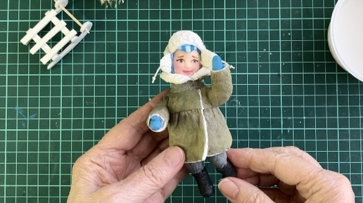 Делаем тулуп с меховой опушкой на воротнике. Крепим уши на шапке ушанке. Про ёлочную игрушку из ваты