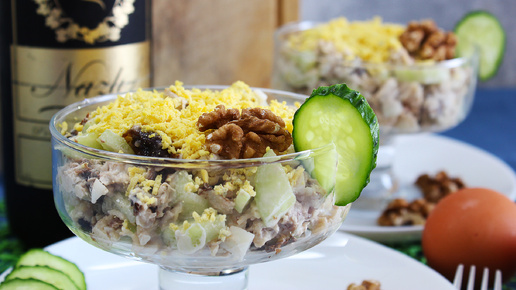 Салат с вареной курицей и черносливом. Курица и чернослив - идеальное сочетание.
