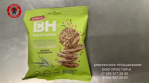 Упаковка итальянских хлебцев с розмарином на оборудовании от компании ПРОСТОР-К в трехшовный пакет