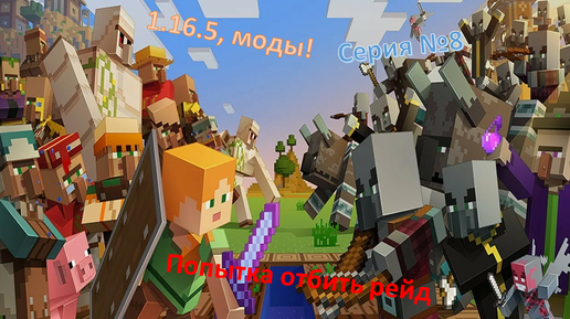 Выживание в майнкрафт 1.16.5 с модами. Попытка отбить рейд... 8 серия