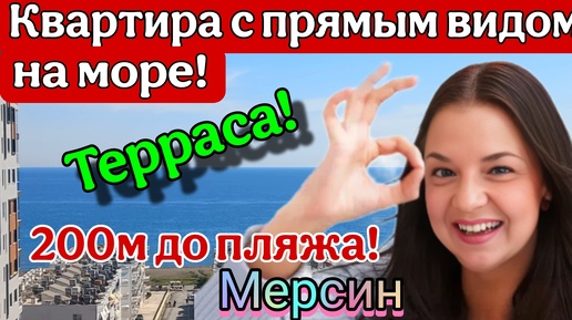 Прямой вид на море! 200 м до пляжа! Классная локация! Мерсин. Турция.
