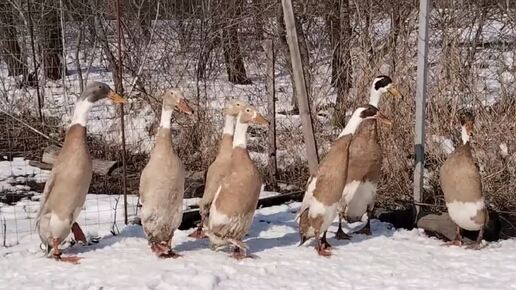Индийские бегунки окраса палево-белый (арлекин). Звуки обедающих бегунков.