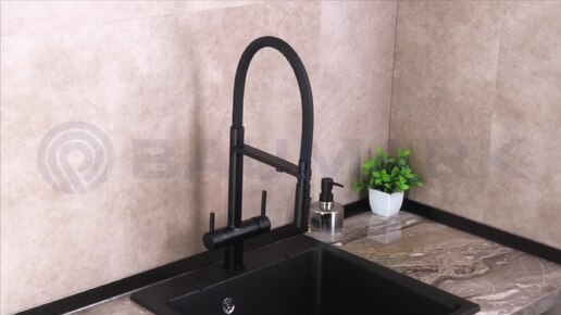 Обзор стильного черного смесителя BAUMARK BM3222H с гибким изливом и подключением к фильтру