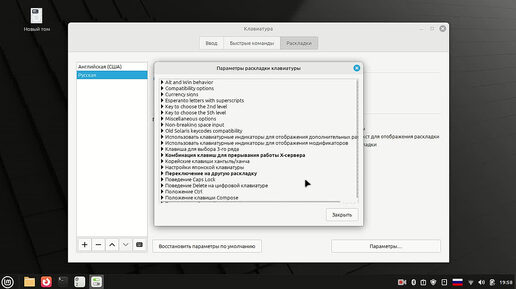 настройка переключения раскладки клавиатуры в Linux Mint 22.1 Cinnamon