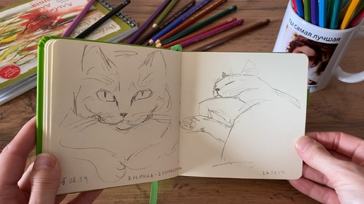 Первые зарисовки с натуры✨ Обзор-листалка скетчбука