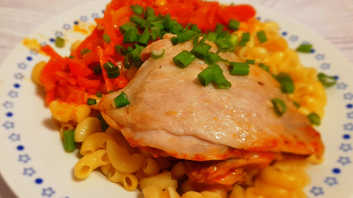 Готовится такое блюдо довольно быстро, а большое количество ароматного соуса сделает вкусным любой гарнир.