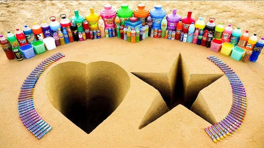 Эксперимент: сердечки и звездочки с Big Mtn Dew, Coca Cola, Fanta, Monster, Chupa Chups и Mentos
