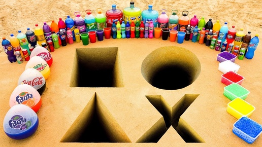 Большое извержение зубной пасты из круга, квадрата, треугольника, крест-накрест, с Фантой, Кока-колой и Ментосом