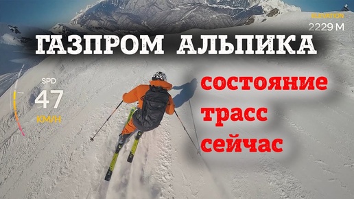 Газпром Альпика - быстрый полный спуск с проверкой состояния горнолыжных трасс в середине марта