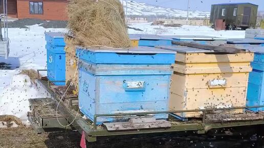 Вытаскиваем пчел после зимовки. Первый облет.