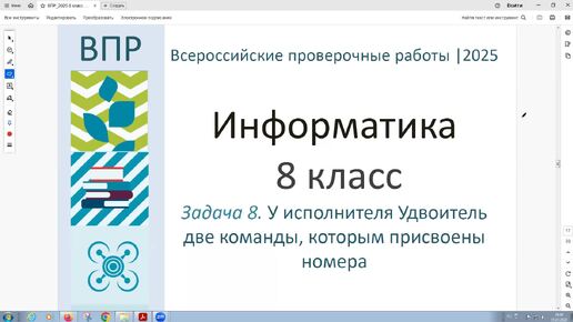 Информатика. Задача 8. У исполнителя Удвоитель две команды, которым присвоены номера. ВПР. 8 класс. Всероссийские проверочные работы. 2025