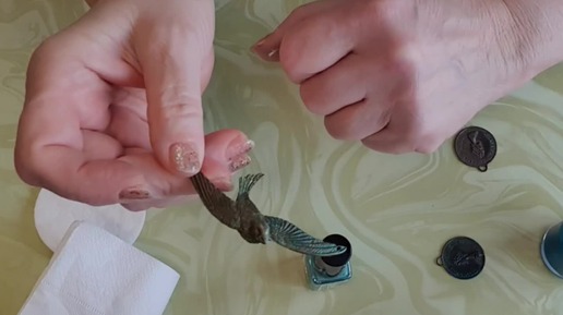 Делаю патину на бронзовых подвесках.
