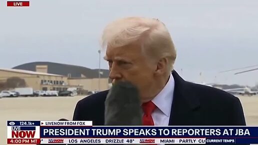 Президент США Дональд Трамп слушал вопрос журналистки о секторе Газа, как вдруг другая журналистка ткнула его микрофоном по губам.
