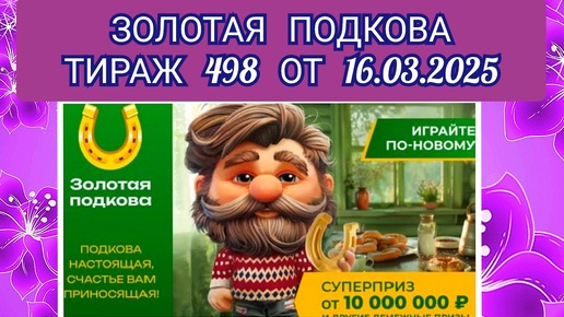 ЗОЛОТАЯ ПОДКОВА ТИРАЖ 498 ОТ 16.03.2025, ПРОВЕРИТЬ БИЛЕТ, СТОЛОТО