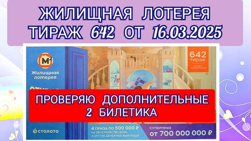 ЖИЛИЩНАЯ ЛОТЕРЕЯ ТИРАЖ 642 ОТ 16.03.2025, ПРОВЕРЯЮ ДОПОЛНИТЕЛЬНЫЕ 2 БИЛЕТИКА, СТОЛОТО