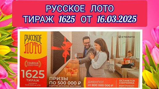 РУССКОЕ ЛОТО ТИРАЖ 1625 ОТ 16.03.2025, ПРОВЕРИТЬ БИЛЕТ, СТОЛОТО