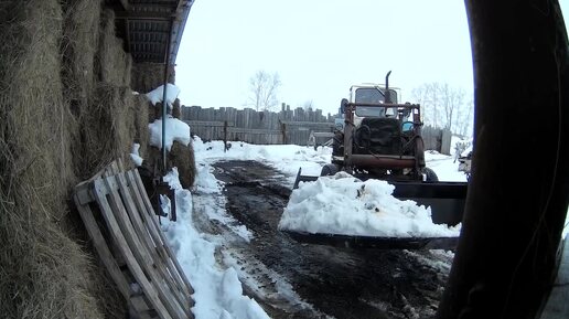 Весна начинается, забот прибавляется. Почистил мокрый снег трактором ЮМЗ-6. 15 марта