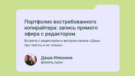 Портфолио востребованного копирайтера в 2025 году | Дайджест копирайтера х Даша Илюхина — запись прямого эфира
