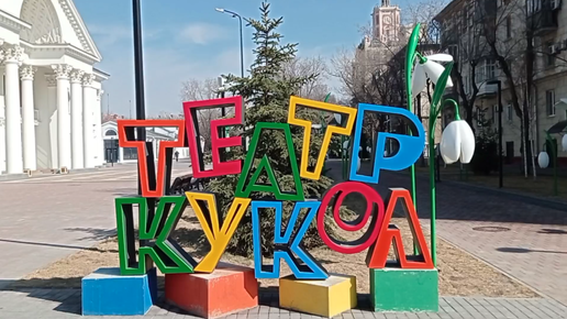 Детский игровой городок и фонари-подснежники – яркое украшение областного театра кукол в центре Волгограда #парки #отдыхсдетьми #волгоград
