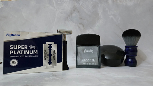 Отличная бритва для 2 лезвий Dovo Erbe Solingen, лезвие FlyDear, помазок синтетика Yaqi, мыло и лосьон Wilkinson Sword