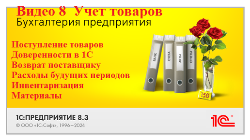 1С Бухгалтерия. Видео-уроки бесплатно. Учет товаров, расходы будущих периодов, возврат поставщику, доверенности, материалы, инвентаризация