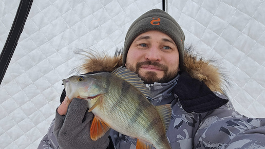 Окунь на 400гр. с.Мурзинка оз.Исетское, лёд стоит только в феврале и неделю.