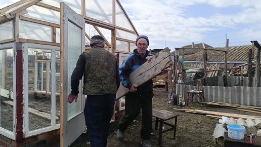 Накрыли теплицу плёнкой. Собираемся уезжать.