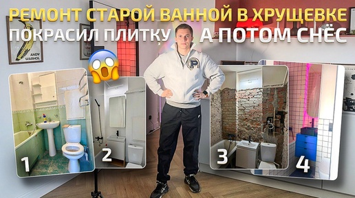 РЕМОНТ СТАРОГО САНУЗЛА В ХРУЩЕВКЕ 30м2: покрасить плитку или положить новую? ВСЕ СТАДИИ ПРОЦЕССА