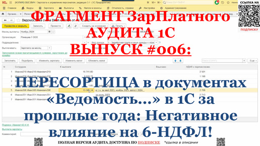 ПЕРЕСОРТИЦА в документах «Ведомость...» в 1С за прошлые года: Негативное влияние на 6-НДФЛ!