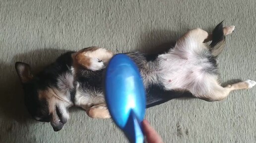 Нюшка готова лежать сколько угодно, лишь бы причёсывали, хотя и причёсывать-то нечего :-)