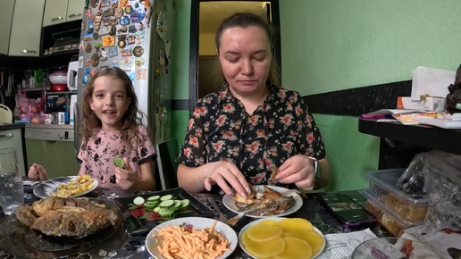 Мукбанг, караси жареные, маринованная редька,обжор